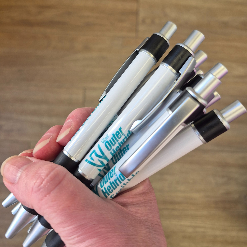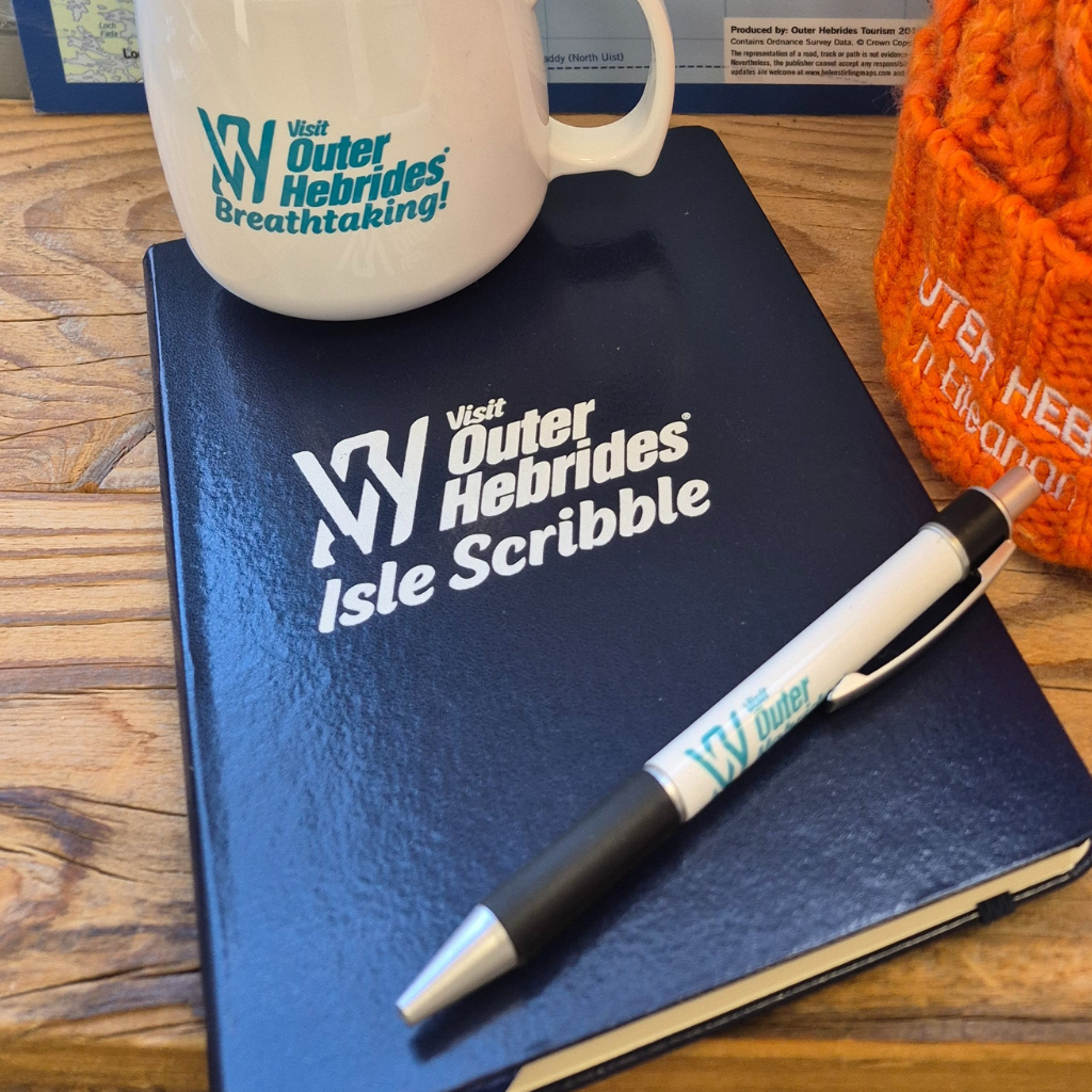Isle Scribble Ballpoint Pen - whether you're noting down must-see spots or journaling your Outer Hebrides adventures, this ballpoint pen is the perfect travel companion. Featuring the Visit Outer Hebrides logo and Isle Scribbles text in a vibrant teal – a colour inspired by the seascapes of the islands – it’s both a practical writing tool and a lovely keepsake.